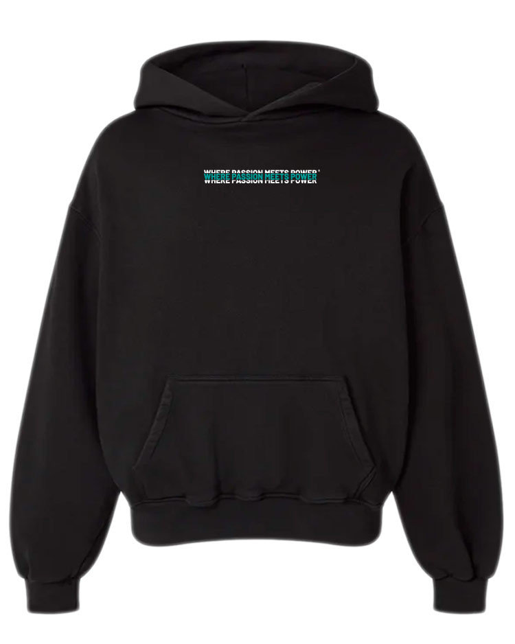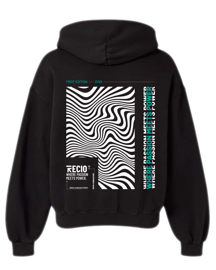 Sudadera unisex Recio Sports Waves Edition estilo oversize con diseño de ondas y eslogan lateral, ¡comodidad y personalidad en cada movimiento!