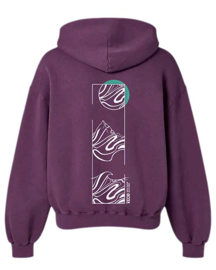 Sudadera unisex Recio Sports Elements Edition estilo oversize con diseño del mar, la montaña y la luna, ¡una prenda pensada para quienes viven cada reto con intensidad!